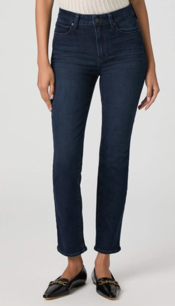 Gemma is our modern update on the classic skinny, with a high-rise slim cigarette leg and an ankle length inseam. Cut from TRANSCEND VINTAGE denim in a super dark blue/black wash with soft, subtle contrasting hardware and a black back patch, this pair combines the signature comfort of Transcend with rich denim character for a lived-in look.