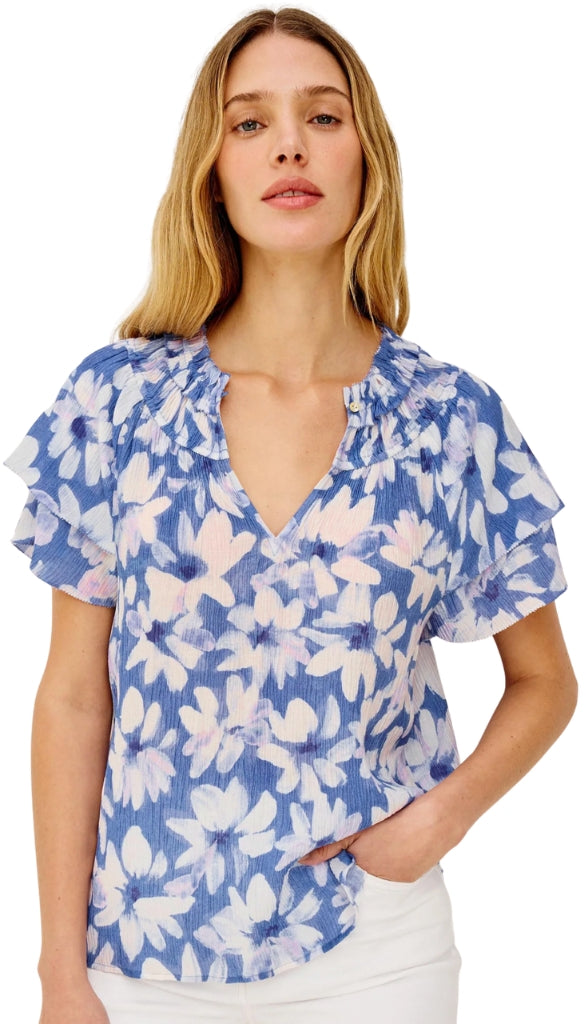 Airy and effortless, the Kamila Top combines lightweight chiffon with an elasticated ruffle collar, V-neckline, and tiered flutter sleeves for a feminine finish.