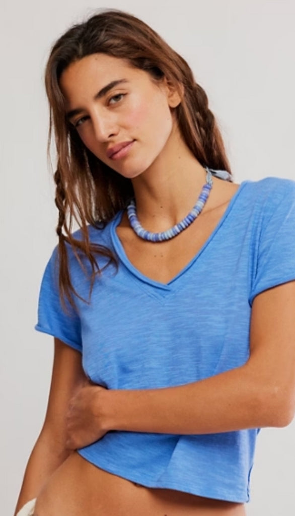 Perfect for layering, this short-sleeved tee from We The Free is featured in a boxy cut and a V-neckline for endless outfitting potential.