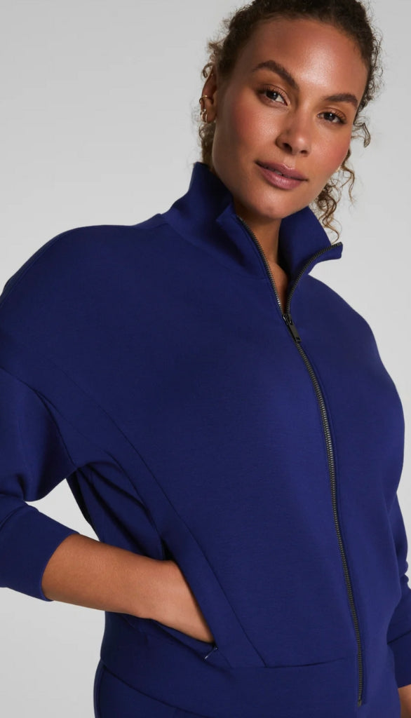 Our SPANX® AirEssentials Track Jacket is made with our ultra-drapey spacer fabric that's breathable, light-as-air, and oh-so soft. This front-zip design features classic track jacket details, like convenient front pockets, a full-length zipper, and classic mockneck for an easy, sporty look. Designed with 4-way stretch, it's the perfect easy layer to have on hand. Whether you're traveling, running errands, or lounging at home, this throw-on-and-go jacket will truly take you anywhere and everywhere.